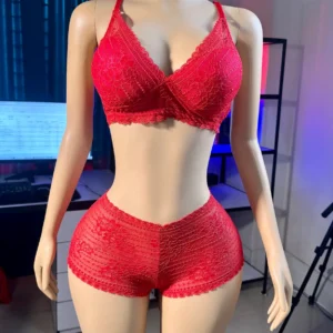 Comfortable Foam Net Bra & Panty Set – (Red Les )