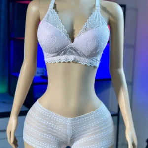 Comfortable Foam Net Bra & Panty Set – white color