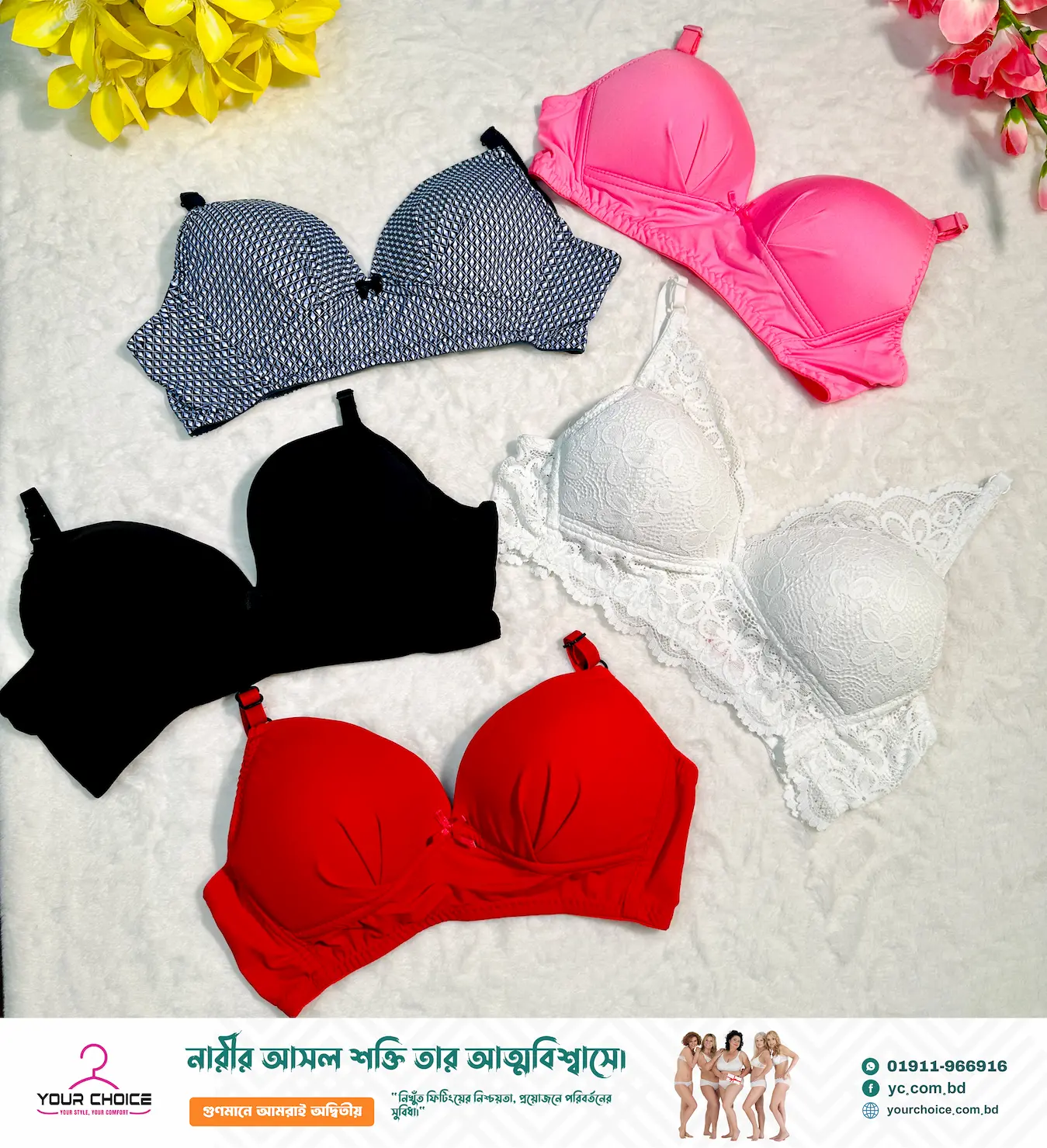 🔥 ধামাকা অফার: ৫ পিস প্রিমিয়াম প্রিন্ট ব্রা কম্বো মাত্র ৯৯০ টাকায়! সাথে ডেলিভারি চার্জ সম্পূর্ণ ফ্রি! 🔥
